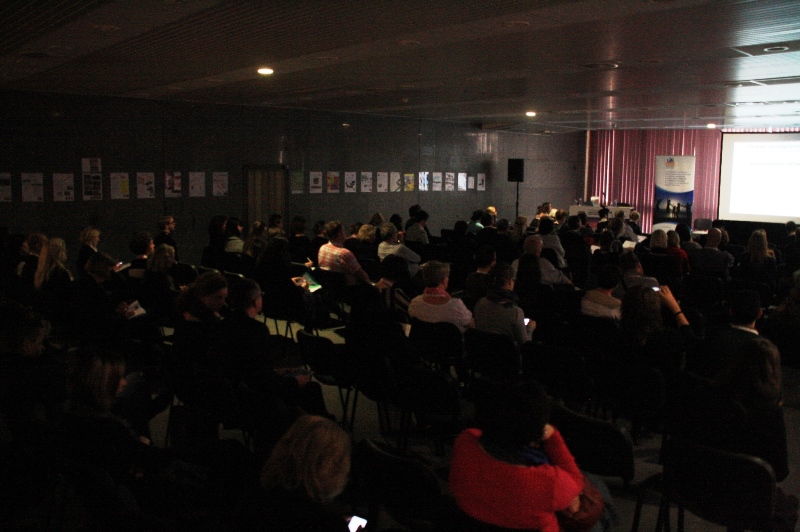 Nas paredes da sala onde decorriam as sessões estavam expostos cartazes identificativos das diversas associações presentes na Bienal.